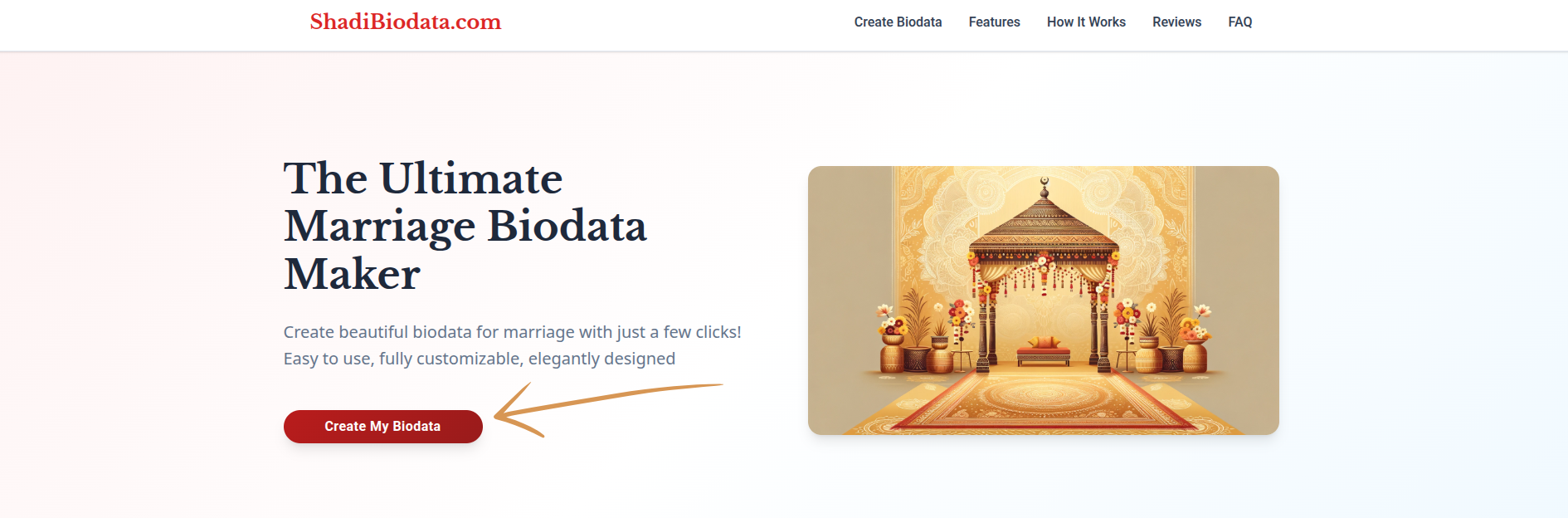 मुख्यपृष्ठावर जा आणि नवीन सेशन सुरू करण्यासाठी "मराठी बायोडाटा बनवा" बटणावर क्लिक करा. कोणतीही नोंदणी किंवा साइन-अप आवश्यक नाही — तुम्ही लगेच सुरू करू शकता.