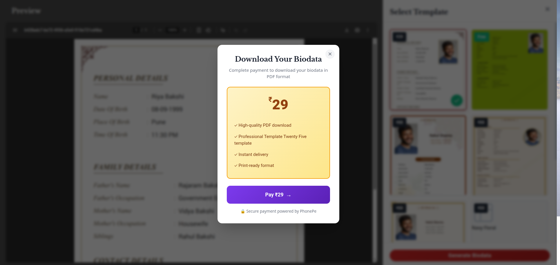 काही मिनिटांत डाउनलोडसाठी तयार. या सोप्या पायऱ्या अनुसरा आणि सुंदर, शेअर-रेडी मराठी बायोडाटा मिळवा.
