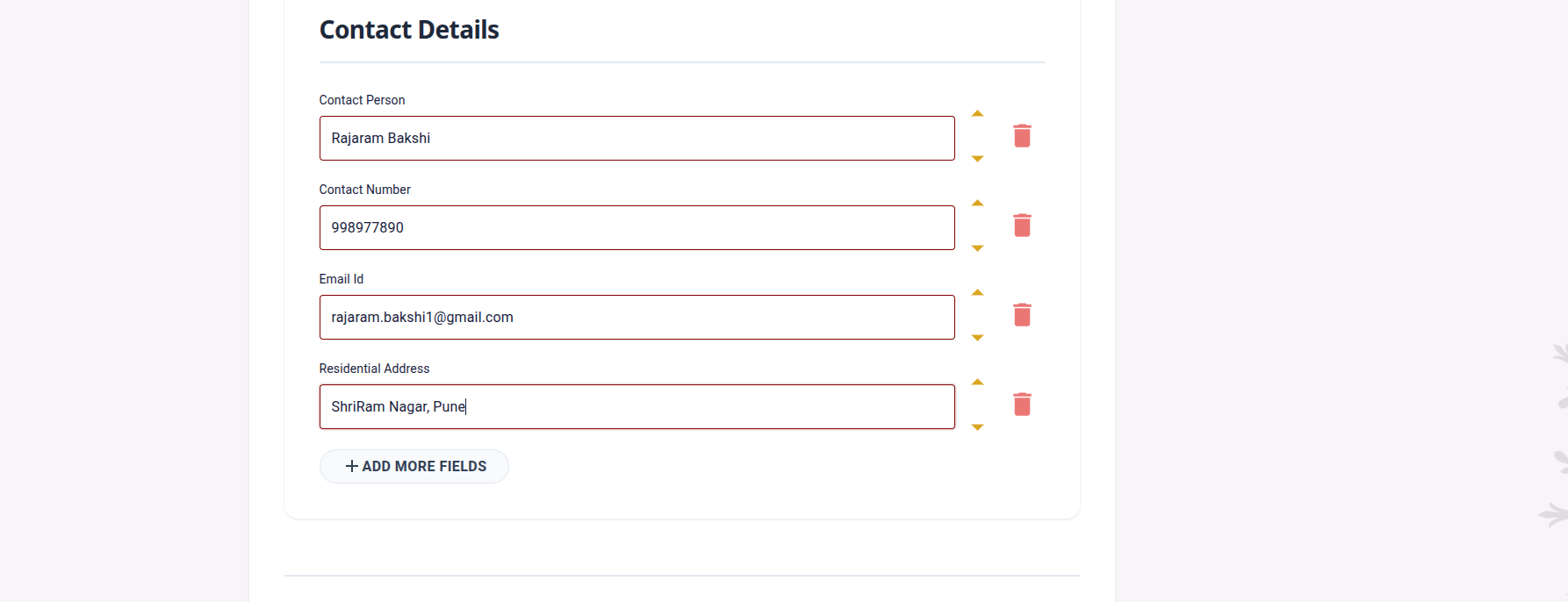 संपर्क व्यक्तीचे नाव, फोन नंबर, ईमेल पत्ता इत्यादी जोडा. हा विभाग कुटुंबांना प्रस्तावांसाठी योग्य व्यक्तीशी संपर्क साधण्यास मदत करतो.